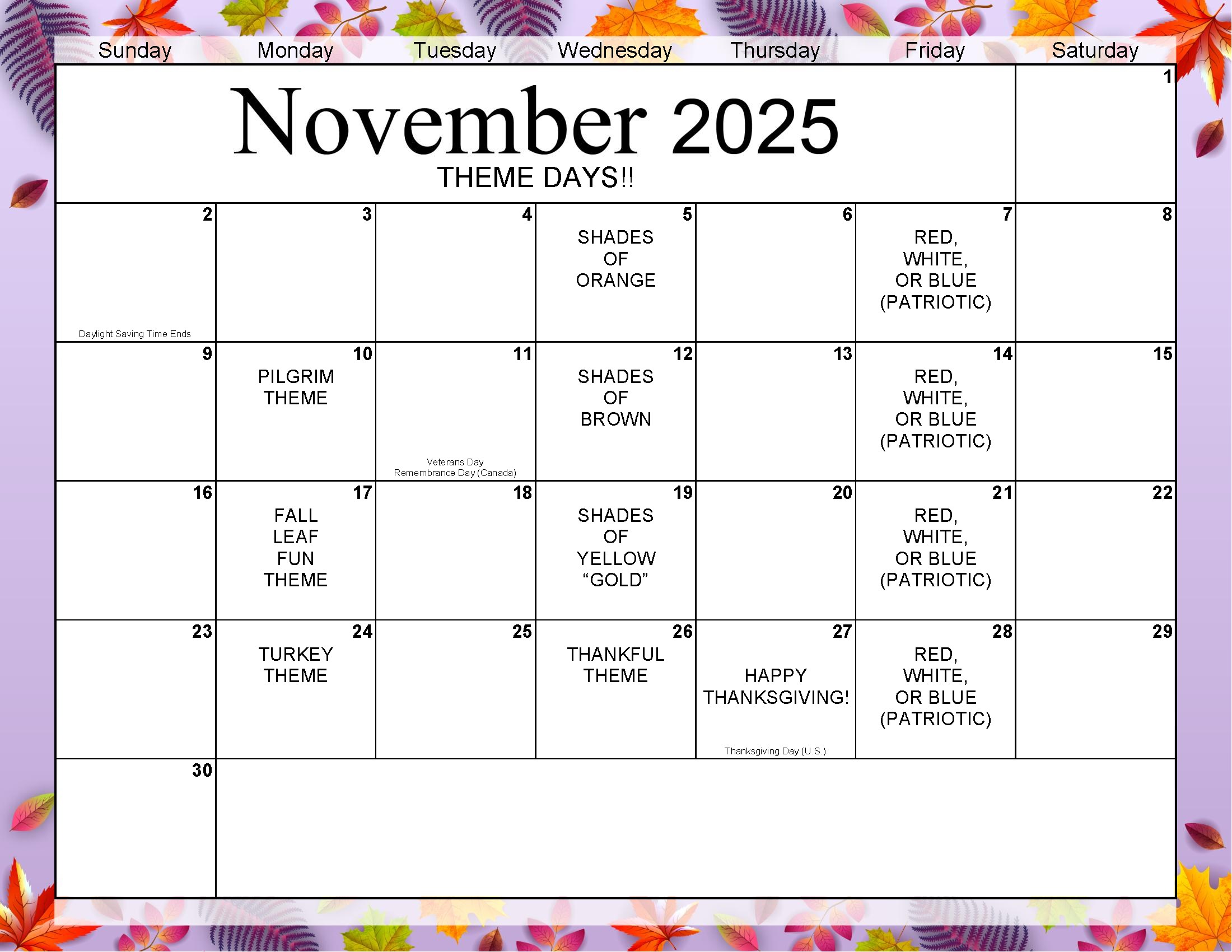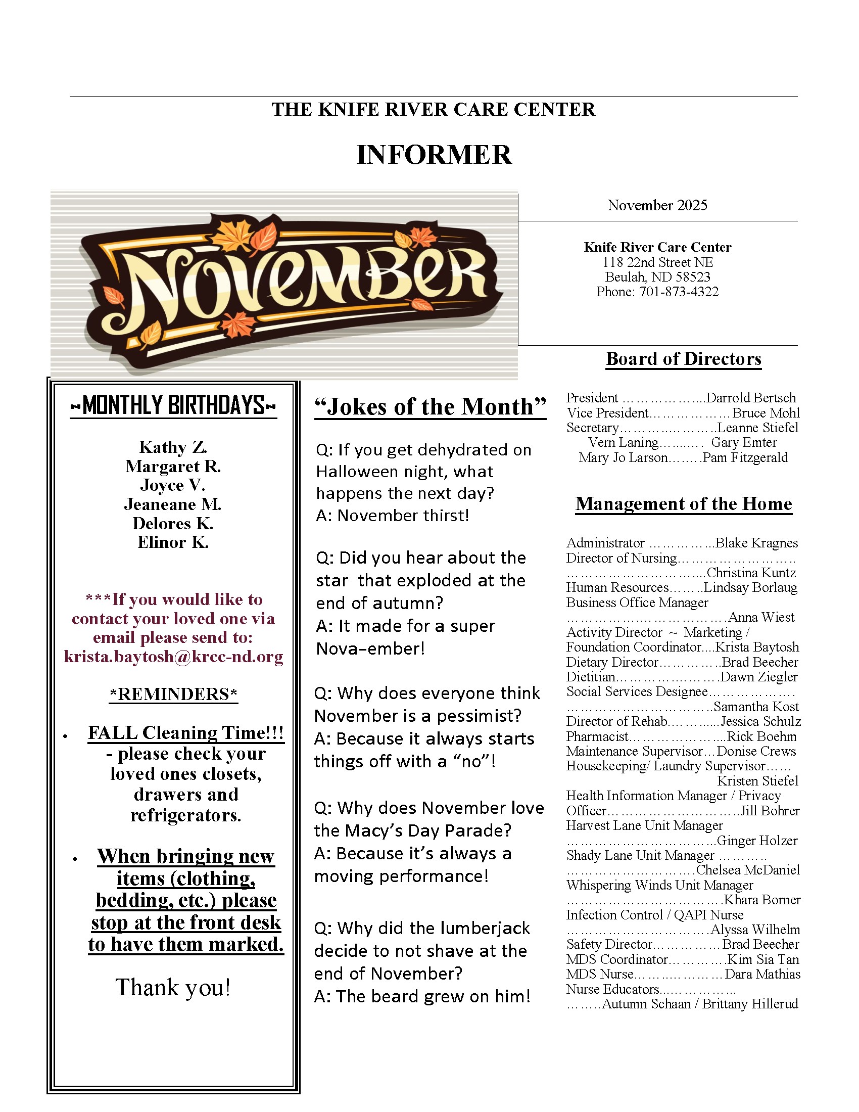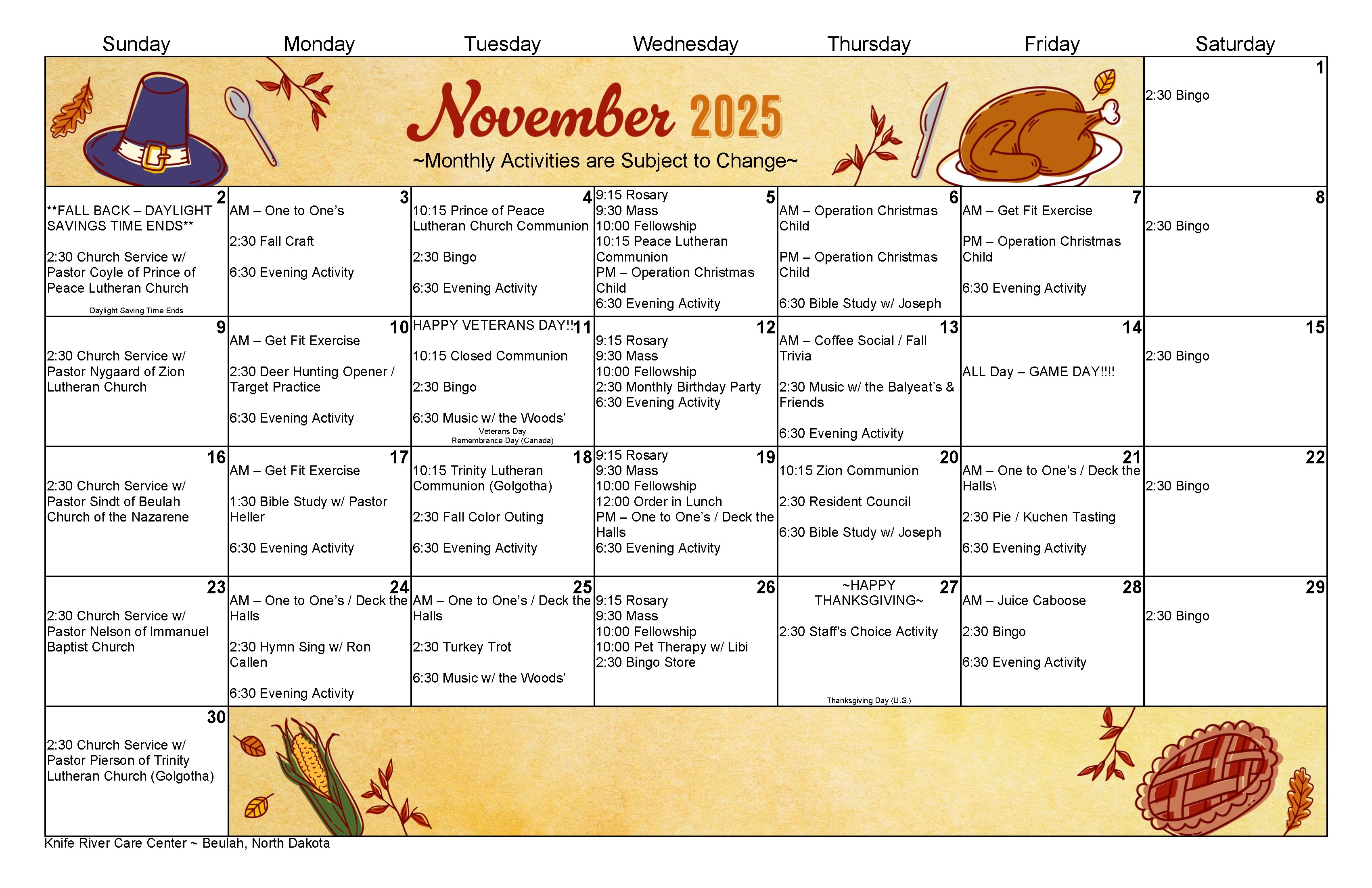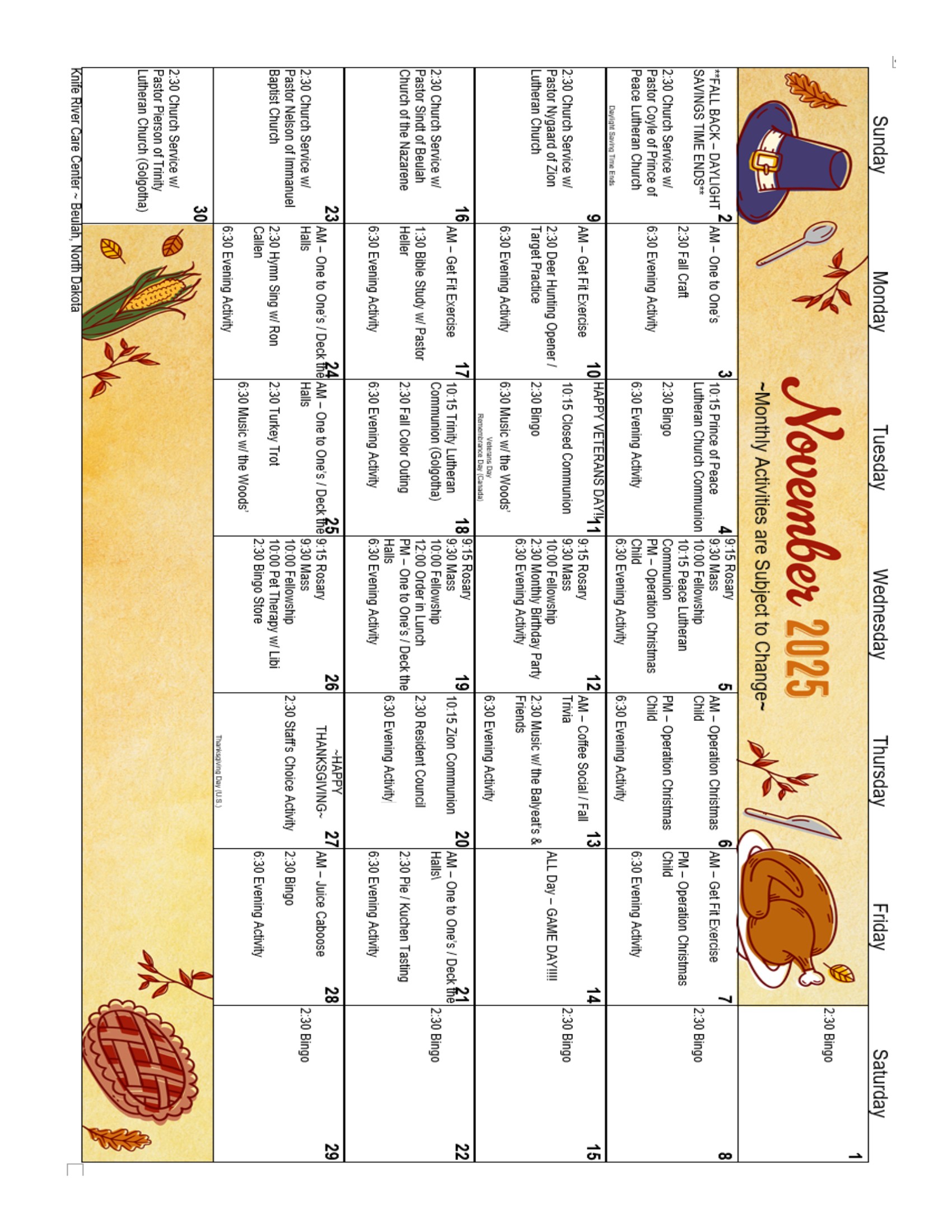 November 2025 Calendar & Newsletter