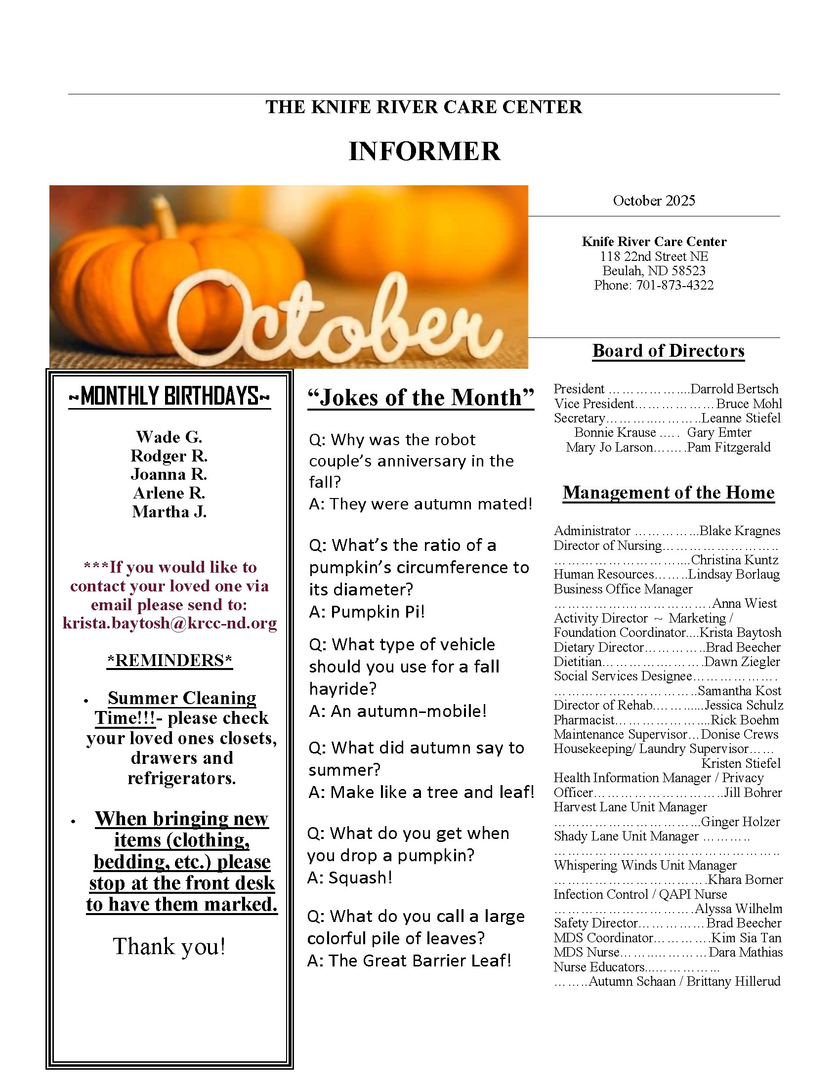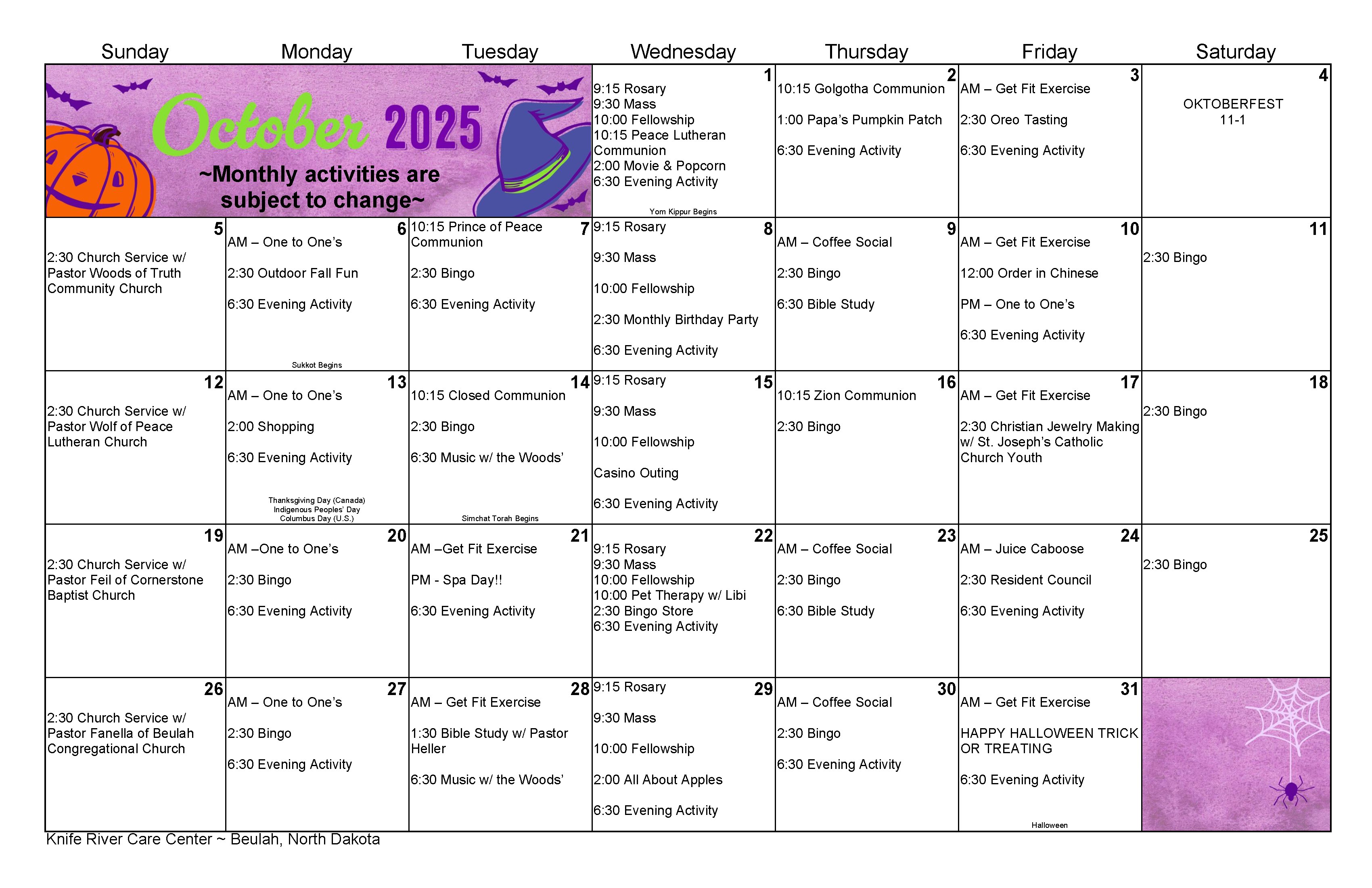 October 2025 Calendar & Newsletter